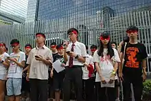 - "(Joshua) Wong formed a group of students in Hong Kong called Scholarism to stop the territory from implementing a mainland-designed "national education" policy that ignored the Tiananmen massacre and pushed fealty to the Chinese Communist Party."Beech, « The Voice of a Generation », sur Time, (consulté le )