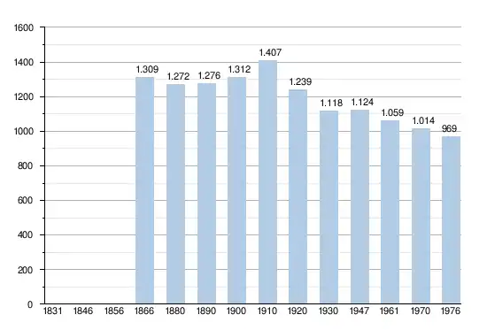 - Sources : INS, Rem. : 1831 jusqu'en 1970 = recensements, 1976 = nombre d'habitants au 31 décembre[2].