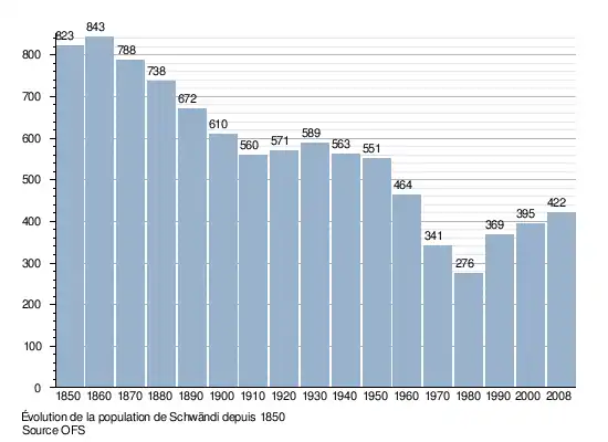 Le graphique suivant résume l'évolution de la population de Schwändi entre 1850 et 2008[3] :