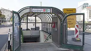 Les sorties mènent au moyen d'escalators sur la Schwedenplatz (sortie Laurenzerberg pour le tramway ou sortie Rotenturmstraße entre Hafnersteig et Rotenturmstraße, possibilité de changement vers la ligne 2A et les lignes pour l'aéroport de Vienne) et par un escalier ferme en direction d'Urania.