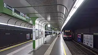 Établie en souterrain, Schwedenplatz est une station de correspondance disposant de deux sous-stations[1] :