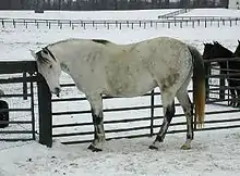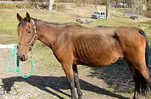 | 4 | Moyennement mince | La crête de la colonne vertébrale et les côtes sont visibles ; la tête de la queue peut ou non être visible selon la race; le garrot, les épaules et le cou ne semblent pas trop minces |  |