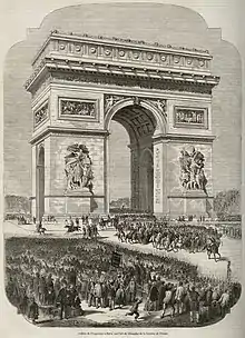Le 16 octobre, le président de la République est de retour à Paris où des arcs de triomphe gigantesques ont été dressés, couronnés de banderoles à Napoléon III, Empereur. Le , par 86 voix contre une seule, un sénatus-consulte rétablit la dignité impériale, approuvée deux semaines plus tard, lors d'un plébiscite, par 7 824 129 voix contre 253 149 non et un peu plus de 2 millions d'abstentions[23]. Pour Jules Ferry, l'authenticité du résultat du vote ne peut être mise en doute et démontre l'expression « passionnée, sincère et libre » de la classe paysanne telle que déjà exprimée lors de l'élection présidentielle de 1848 et en décembre 1851, tandis que le journaliste libéral Lucien-Anatole Prévost-Paradol se déclare guéri du suffrage universel[24].