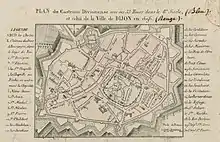 Déjà, dès les premiers jours de février 1672 des rumeurs de guerre se répandaient avec pour effet de donner une impulsion plus vive aux travaux de rétablissement des fortifications. Le nouveau mayeur de Dole, ordonne que tous les habitants, même les ecclésiastiques , soient astreints à participer aux travaux. Ce zèle était inutile, car en ce moment-là il n'entrait pas dans les projets du gouverneur espagnol en cas de guerre, de défendre Dole, sérieusement[7]. L'ennemi qui s'était montré du côté de Jonvelle s'arrêta sur la frontière, et la province en fut pour les frais assez lourds faits pour levée des milices, qui avaient été assemblées à Besançon.