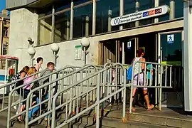 Elle dispose d'un bâtiment d'accès situé au nord de la station, en relation avec le quai par un tunnel en pente équipé de trois escaliers mécaniques accédant directement sur le nord du quai central[4].