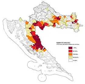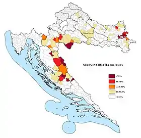 Selon le recensement de 1991, les Serbes représentaient 12,16 % (581,663) de la population totale de la Croatie[4]. Selon le recensement de 2011, les Serbes représentaient 4,36 % (186,633) de la population totale de la Croatie[5].