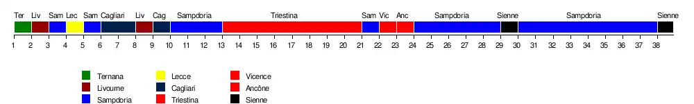 | Résultats (▼dom., ►ext.) | ANC | ASC | BAR | CAG | CAT | COS | GEN | LEC | LIV | MES | NAP | PAL | SAL | SAM | SIE | TER | TRI | VEN | HEL | VIC |