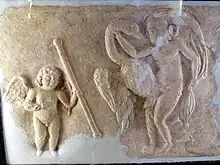 Les liens entre la reproduction humaine, la prospérité générale et le bien-être de l'État est incarné par le culte de Vénus, qui diffère de sa contrepartie grecque Aphrodite dans son rôle de mère du peuple romain à travers son fils demi-dieu Énée[31]. Durant la guerre civile des années -80, Sylla, en passe d’envahir son propre pays avec les légions sous son commandement, fait battre des pièces montrant une Vénus couronnée comme divinité tutélaire personnelle, avec Cupidon tenant la palme de la victoire ; au verso, les trophées militaires côtoient les augures, les prêtres d'État qui lisent la volonté des Dieux. L'iconographie lie les divinités de l’amour et du désir avec le succès militaire et l’autorité religieuse ; Sylla adopte le titre Epaphroditus, celui d'Aphrodite, avant de devenir dictateur.[32] Le fascinum, un charme phallique, est omniprésent dans la culture romaine, apparaissant partout, depuis les bijoux jusqu'aux cloches ou aux lampes[Williams 1], également dans des amulettes protégeant les enfants[33] ou lors des triomphes[34].