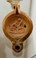 L'art érotique, particulièrement celui préservé à Pompéi et à Herculanum (en), est une source riche et sans ambiguïtés ; certaines images contredisent les préférences sexuelles soulignées par les sources littéraires et peuvent avoir eu pour but de provoquer le rire ou de combattre les attitudes conventionnelles[Clarke 5]. Les objets de tous les jours comme les miroirs ou la vaisselle pouvaient être décorés avec des scènes érotiques ; sur la céramique sigillée cela va « d'élégants badinages amoureux » à des vues explicites montrant le pénis entrant dans le vagin[Clarke 6]. Les peintures érotiques se trouvent dans les maisons les plus respectables de la noblesse romaine, comme Ovide note :