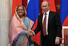 Sheikh Hasina avec le président russe Vladimir Poutine à Moscou en .