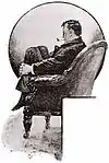 Alan Barnes relève qu'Eille Norwood (à droite) adopte une posture inspirée d'une illustration de Sidney Paget (genoux sous le menton et bras autour des jambes).  | ||