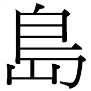 Kanji pour shima. Il représente un oiseau volant au-dessus d’une montagne.