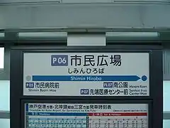 Shimin Hiroba (市民広場駅, Minatojima station) est une station de la Port Liner du métro automatique de Kobe New Transit. Elle est située 6 Minatojima Nakamachi, dans l'arrondissement Chūō-ku de Kobe, dans la préfecture de Hyōgo au Japon.
