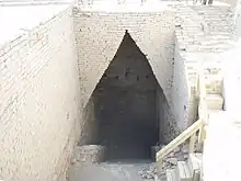 Traduction de l'inscription : « Pour le dieu Inshushinak, son maître, Shulgi, l'homme fort, le roi d'Ur, le roi des pays de Sumer et d'Akkad, a construit pour lui A'arkesh, son temple bien-aimé[107]. »