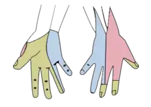 Si, en moins de 2 minutes, cette action provoque des fourmillements (paresthésies) dans le territoire du nerf médian c'est-à-dire la face antérieure du pouce, de l'index, du majeur et de la face externe de l'annulaire, ceci évoquant une compression du nerf médian dans le canal carpien.