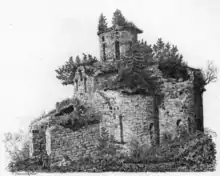 Des bâtiments adjacents comportant des cellules monastiques laissent envisager la présence d'un ancien monastère à cet endroit[5].