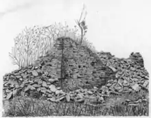 Les ruines d'un bâtiment, situé à 90 mètres à l'est de la chapelle n° 8, ont été étudiées par VA Kouznetsov en 1961. Le bâtiment était composé de deux pièces, il mesurait 4,7 mètres sur 2,0 mètres (chaque pièce ne dépassant pas 0,8 mètre), orienté le long de la ligne NO-SE. Dans les ruines, les chercheurs ont découvert des fragments de céramique et 25 croix de fer la plupart formées à partir de deux plaques de métal rivetées. La datation du bâtiment du Xe – XIIe siècle est confirmée par l'étude des céramiques et des croix de fer, qui étaient répandues dans tout le Caucase du Nord à cette période.