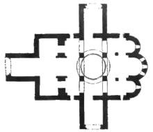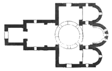 Les nefs nord et centrale de l'église ont la même largeur, la nef sud est plus étroite. Les absides sont semi-circulaires et de petite taille. Le système de toiture était à l'origine similaire à celui des églises nord et centrales.