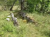 - des dalles de forme rectangulaire du même type que celles employées comme orthostates dans les dolmens;