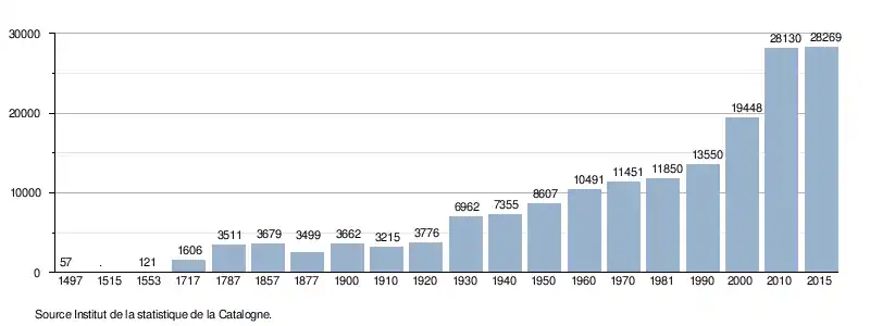 - (ca) Institut de la statistique de Catalogne (Institut d'Estadistica de Catalunya), Idescat. Cens de poblacio i habitatges Sitges. Poblacio per sexe. Consulté le 17 novembre 2016.