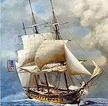 Baptisée par le président George Washington d'après la Constitution des États-Unis, elle est actuellement le plus vieux navire de guerre encore à flot dans le monde. Elle a pour premières missions de fournir une protection aux navires marchands américains lors de la Quasi-guerre avec la France et de rechercher les navires de guerre français. Le navire prend la mer le et le , elle capture le Niger[111]. Entre et , elle effectue plusieurs missions dans les Caraïbes afin de protéger les navires marchands américains, intercepter les navires de guerre français et bloquer la navigation française. Lors de ces patrouilles, elle intercepte plusieurs navires, le Spencer (le ), le Carteret, l'Amelia (le ), le sloop Sally (le ) et le Sandwich (le ). La Constitution reprend aussi le sloop américain Neutrality le . Après la guerre, elle est placée en réserve le [112].