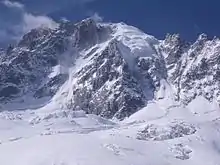 Face nord de l'aiguille verte. Sur la gauche, le couloir Couturier descendu en 1973 par Cachat-Russet, Baud et Vallençant.