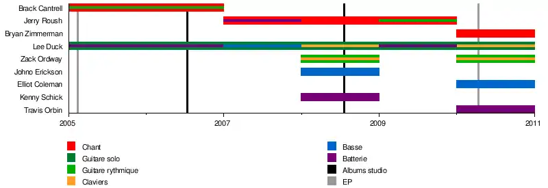 - Brack Cantrell - chant, claviers, synthétiseur, programmation, piano, percussions, chœurs (2005-2011), batterie (2005–2006)