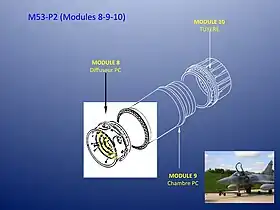 |   Vue de la tuyère du M53, ici sur un Mirage 2000B. | |
