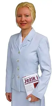 La troisième monographie de Snježana Kordić[50] traite de sujets sociolinguistiques, tels que la politique linguistique en Croatie, la théorie des langues pluricentriques et la manière dont l'identité, la culture, la nation, et l'histoire[51] peuvent être mal utilisées par des linguistes motivés par des considérations politiques[5],[23],[52],[53]. Kordić a constaté que depuis 1990, le purisme et le prescriptivisme étaient les principaux traits de la politique linguistique en Croatie[54],[55],[56],[57]. Une interdiction de certains mots[58],[59] perçus comme « serbes » (qui étaient pour la plupart purement internationaux) et l’idée selon laquelle un mot est plus « croate » si moins de Croates le comprennent[15], produisent l'impression générale que seuls quelques linguistes en Croatie connaissaient la langue standard[21],[60].