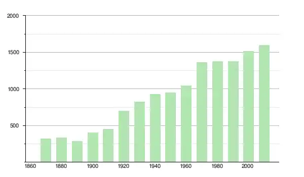 | 1970 | 1 359 | ▲ +30,3 % | |