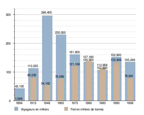 La compagnie a vu le nombre de voyageurs transporter augmenter chaque année jusqu'en 1948 puis le nombre a diminué, notamment à cause de l'introduction de l'horaire cadencé par les CFF à Chavornay et des correspondances mal assurées. Le fret, quant à lui, a subi des variations positives et négatives mais tendant vers l'augmentation constante[17].