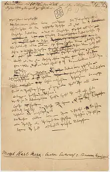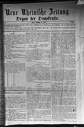 À partir des années 1840, cette gauche hégélienne se radicalise : la promotion d'une libéralisation graduelle ne parvient pas à s'imposer face à un État prussien rétif à tout changement[99]. Moses Hess, futur théoricien du sionisme, soucieux de transformer la philosophie de Hegel en philosophie de l'action, développe une pensée socialiste préconisant l'instauration d'une société sans propriété privée, qui serait une « nouvelle Jérusalem ». La tendance de Hess — que Marx surnomme par la suite, de manière ironique, le « socialisme vrai » — se répand en Allemagne vers 1844, en particulier dans les provinces occidentales, témoignant de l'intérêt des milieux intellectuels pour les questions sociales. Mais la littérature issue de ce courant est trop abstraite et inactuelle pour avoir une influence politique directe[100]. En 1843, Karl Marx décide d'opérer une liaison entre l'hégélianisme de gauche et son propre engagement socialiste[98].