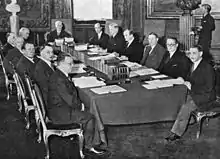 En Suisse, la présence durant le XIXe siècle de nombreux exilés politiques allemands, notamment après les révolutions de 1848, favorise la diffusion des idées socialistes et du syndicalisme, donnant naissance à la fin du siècle au Parti socialiste suisse (en allemand : Sozialdemokratische Partei der Schweiz, en italien, Partito Socialista Svizzero)[148]. En 1889 est fondé, sur l'entente de 69 associations ouvrières, le Parti social-démocrate suédois des travailleurs, qui met rapidement l'accent sur la primauté de l'action parlementaire et la conquête du suffrage universel, qui ne peut être obtenu que par une alliance avec les partis bourgeois de gauche. Dès le premier congrès du parti suédois, la perspective de la révolution violente est écartée et, si la référence marxiste n'est initialement pas absente, elle demeure lettre morte[149],[150]. Le Parti travailliste norvégien est fondé en 1887[151]. Le Parti social-démocrate du Danemark est fondé dès 1871 comme section de l'Internationale, mais ne réalise de percée électorale qu'à partir de 1883 : en 1898, les socialistes danois reçoivent l'appui de diverses organisations syndicales[152].