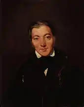 Le comte Claude Henri de Saint-Simon développe dans les années 1820 une doctrine matérialiste prônant d'atteindre l'âge d'or par le progrès économique, lequel serait assuré par un gouvernement de la bourgeoisie qui aurait pour but l'amélioration du sort de la classe la plus pauvre[67]. Le socialisme prôné par Saint-Simon est un socialisme élitiste, où le savoir est détenu par une élite sociale à laquelle les autres sociétaires ne sauraient prétendre, même si l'ignorance de ces derniers est destinée à reculer avec le temps[68]. Après la mort de Saint-Simon en 1825, sa doctrine, baptisée saint-simonisme, est perpétuée par ses disciples, dont certains évoluent vers une logique sectaire. Parmi les personnalités les plus marquantes issues du saint-simonisme, on note Saint-Amand Bazard, Barthélemy Prosper Enfantin et Olinde Rodrigues : les saint-simoniens réfléchissent notamment au problème des crises économiques, causées selon eux par l'appropriation privée des capitaux, qui engendre non seulement l'« exploitation de l'homme par l'homme », mais aussi l'« anarchie économique »[69]. C'est également un saint-simonien, Pierre Leroux, qui réintroduit en 1831 le mot socialisme dans la langue française, cette fois dans son sens moderne[70] ; Leroux s'en attribue d'ailleurs la paternité[71]. En , il emploie le néologisme dans un texte intitulé De l'individualisme et du socialisme, publié dans la Revue encyclopédique. Pierre Leroux, dont la pensée est d'inspiration avant tout religieuse, définit le mot comme un « néologisme nécessaire », forgé par opposition au concept d'individualisme[72]. Pour lui, le socialisme, directement rattaché à la Révolution française, est « la doctrine qui ne sacrifiera aucun des termes de la formule Liberté, Égalité, Fraternité »[73],[74].