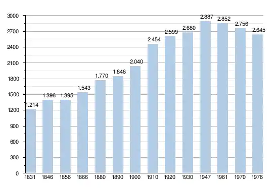 - Sources : INS, Rem. : 1831 jusqu'en 1970 = recensements, 1976 = nombre d'habitants au 31 décembre.