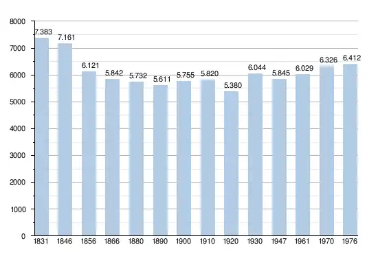- Source: DGS , de 1831 à 1981=recensements population; à partir de 1990 = nombre d'habitants chaque 1 janvier