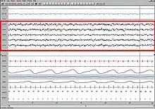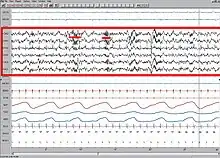 - d'autres paramètres, comme l'activité électrique du cœur (électrocardiographie), la polygraphie respiratoire (mesure du débit respiratoire, des ronflements, des mouvements du thorax et de l'abdomen, de la saturation du sang en oxygène = oxymétrie), la température corporelle, l'actimétrie (mesure de l'activité d'une personne).
