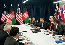Ce processus, qui s'accompagne d'un « partenariat de long terme » signé avec le président Hamid Karzai, devrait être entamé en 2011 et se terminer d'ici 2014[3],[4]. Le premier ministre britannique David Cameron s'est pour sa part engagé à retirer l'ensemble de ses forces armées d'ici à 2015, ce qui représente 10 000 soldats, soit le second contingent le plus important en Afghanistan[5].