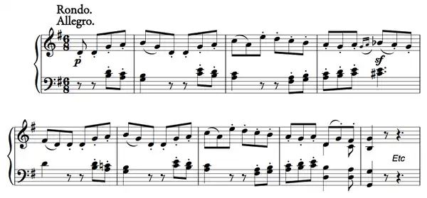 Elle est intitulée « Sonate facile », comporte deux mouvements et dure environ huit minutes :