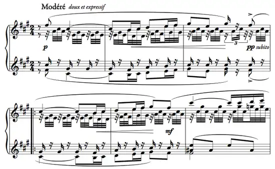 Premières mesures du premier mouvement, Modéré.