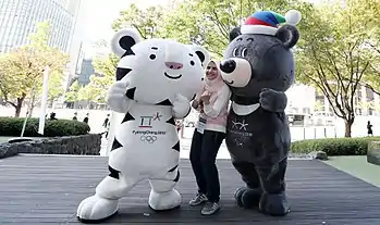 Soohorang (수호랑) et Bandabi (반다비) sont respectivement les mascottes des Jeux olympiques et paralympiques de Pyeongchang 2018. Soohorang est un tigre blanc tandis que Bandabi est un ours noir d'Asie[1],[2],[3]. Les mascottes ont été dévoilées par le Comité d'organisation le après l'aval de la Commission exécutive du CIO et celui du CIP[3],[4].