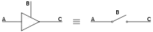 Des tampons à commandes complémentaires, l'une normale, l'autre inversée, permettent de réaliser une commutation entre deux sources avec une seule ligne de commande ; ils peuvent aussi s'utiliser tête-bêche, sur une même ligne, pour autoriser le transfert de données dans un sens ou dans l'autre[7].