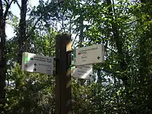 Les itinéraires balisés permanents sont constitués soit de panonceaux formés de piquet bois avec signalisation indiquant direction et kilométrage, soit d'un simple piquet bois avec logo VTT incrusté à chaque changement de sens indiquant la direction à prendre.