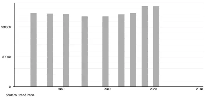 - Population municipale légale en vigueur au 1er janvier 2024, millésimée 2021, définie dans les limites territoriales en vigueur au 1er janvier 2023, date de référence statistique : 1er janvier 2021.