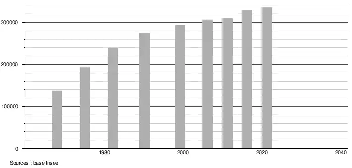- Population municipale légale en vigueur au 1er janvier 2024, millésimée 2021, définie dans les limites territoriales en vigueur au 1er janvier 2023, date de référence statistique : 1er janvier 2021.