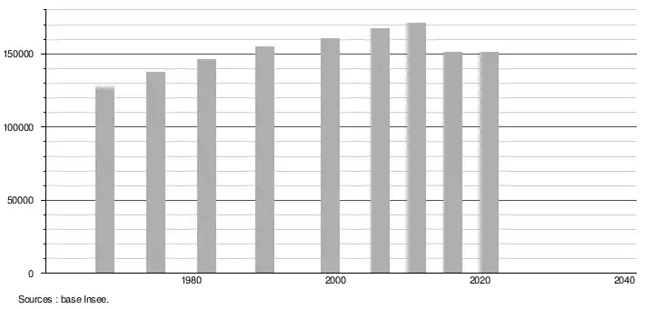 - Population municipale légale en vigueur au 1er janvier 2024, millésimée 2021, définie dans les limites territoriales en vigueur au 1er janvier 2023, date de référence statistique : 1er janvier 2021.