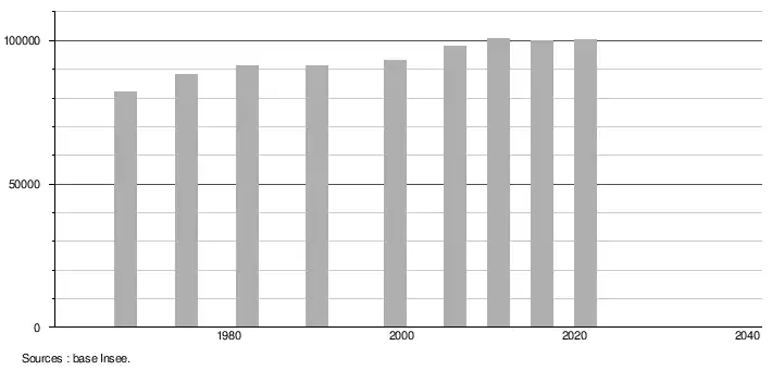 - Population municipale légale en vigueur au 1er janvier 2024, millésimée 2021, définie dans les limites territoriales en vigueur au 1er janvier 2023, date de référence statistique : 1er janvier 2021.