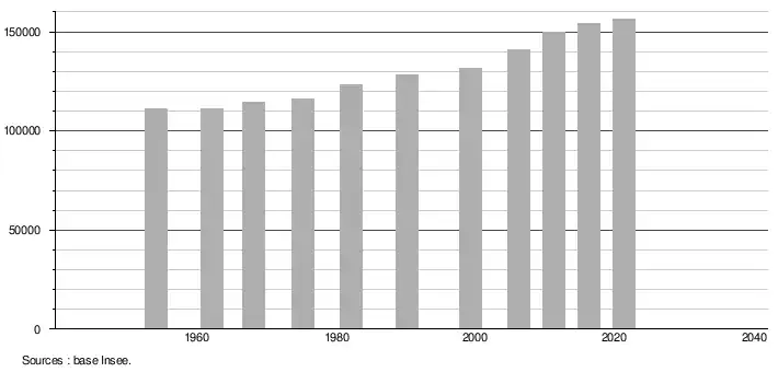 - Population municipale légale en vigueur au 1er janvier 2024, millésimée 2021, définie dans les limites territoriales en vigueur au 1er janvier 2023, date de référence statistique : 1er janvier 2021.