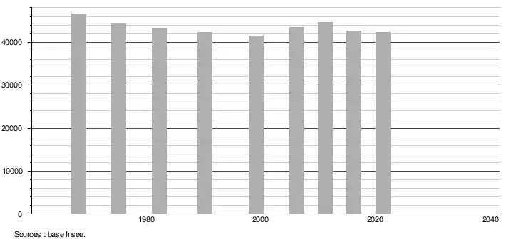 - Population municipale légale en vigueur au 1er janvier 2024, millésimée 2021, définie dans les limites territoriales en vigueur au 1er janvier 2023, date de référence statistique : 1er janvier 2021.