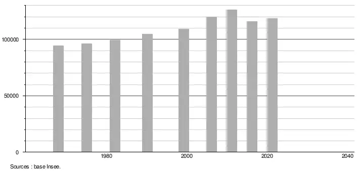 - Population municipale légale en vigueur au 1er janvier 2024, millésimée 2021, définie dans les limites territoriales en vigueur au 1er janvier 2023, date de référence statistique : 1er janvier 2021.